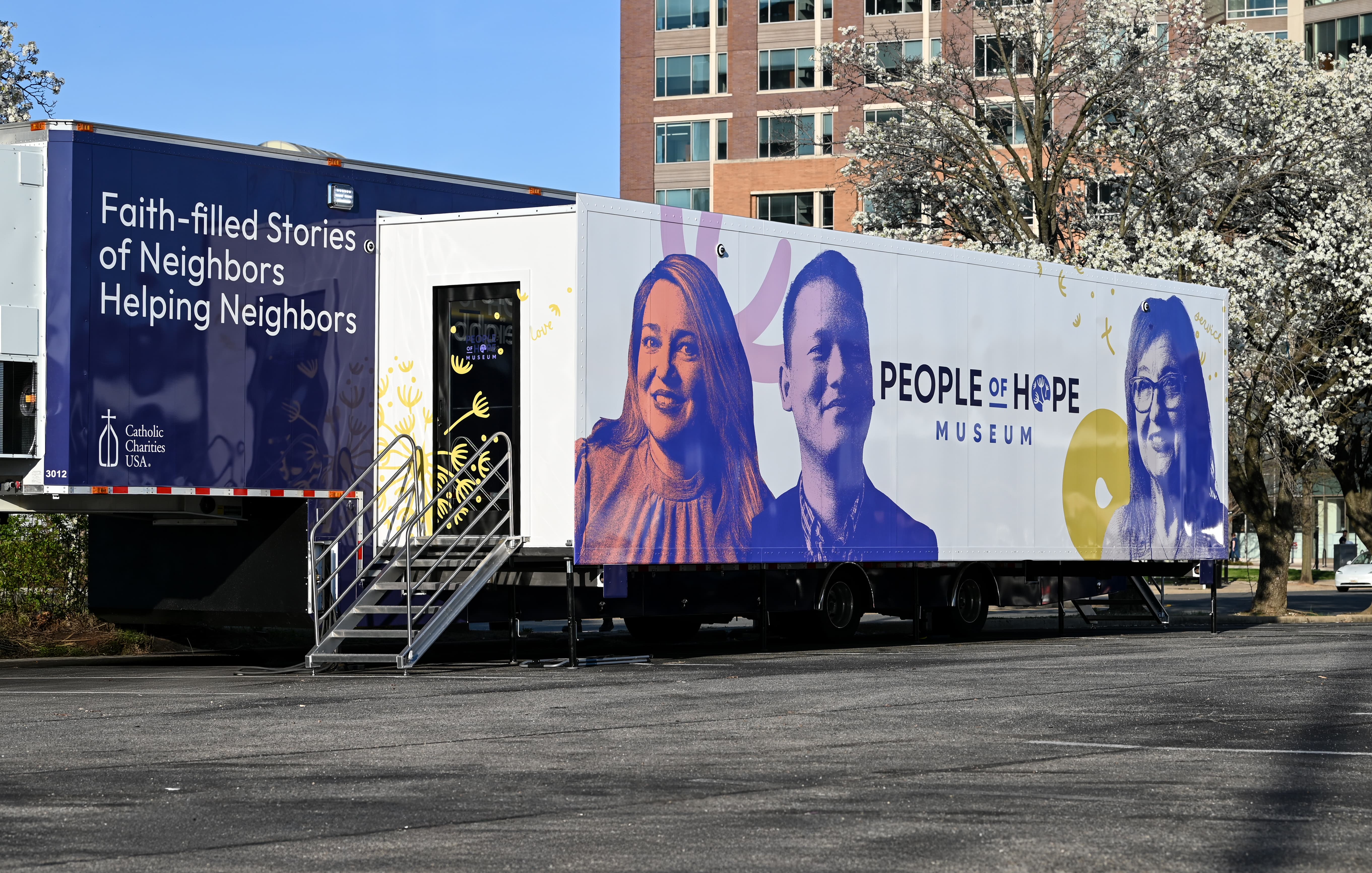 Housed in a retrofitted tractor-trailer, the People of Hope Museum is an immersive experience that brings to life more than 40 professionally produced video stories featuring staff and volunteers of Catholic Charities agencies across the country sharing their meaningful, memorable encounters with families and individuals in need.